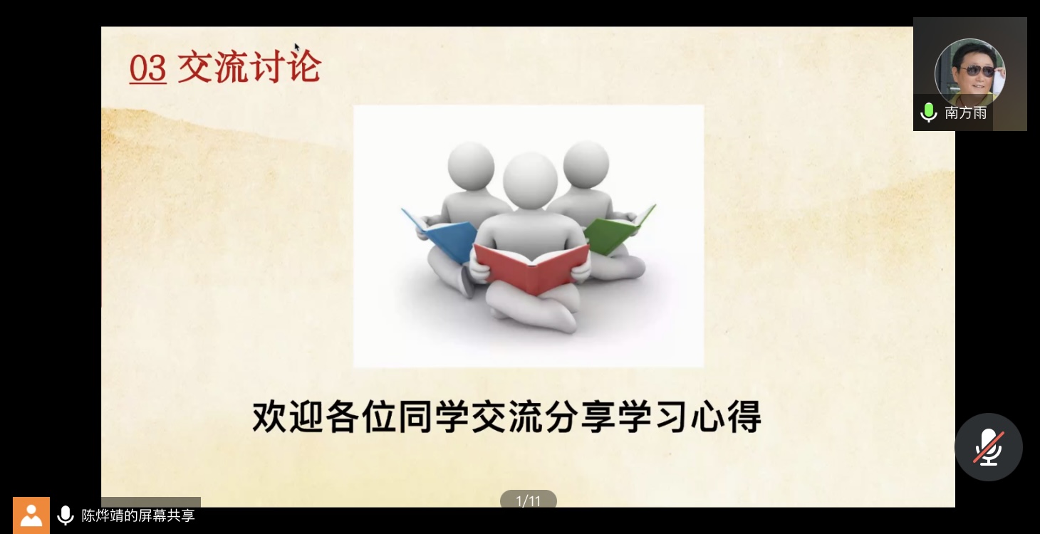 本科生一支部成员陈烨靖同志作为此次专题学习活动的主讲人,本科生一、四支部全体党员共同参与。