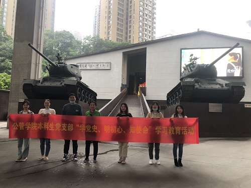 为深入学习贯彻习近平总书记在党史学习教育动员大会上的重要讲话精神,认真推进党史学习教育,扎实推进支部党员和发展对象认真学党史、悟思想、办实事、开新局,2021年5月6日下午,学院本科一支部组织开展了“学党史 跟党走”庆祝建党100周年系列活动之“学党史、明初心、知使命”学习教育活动,前往爱国主义教育基地——重庆建川博物馆进行户外研习。支部书记王丽娟负责组织,支部全体成员到场参加。