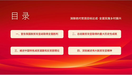 首先,各班的团课主持人向各位同学介绍了本次主题活动的内容、整体情况和流程安排。团课开始,团支书通过文字讲解和知识问答的方式,带领同学们一起学习脱贫攻坚战的计划、过程以及成就等相关知识,组织同学们分享脱贫攻坚过程中令人感动,发人深省的小故事,加深同学们对本次团日学习活动的理解。随后,团支书向同学们传达了我国脱贫攻坚战已经取得全面胜利等相关消息,进一步弘扬了中国共产党伟大的脱贫攻坚精神。
