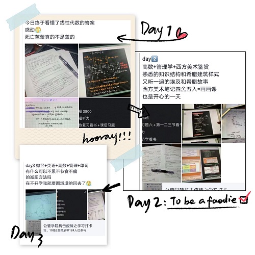 每日学习打卡,3月1日至3月8日期间,同学们积极响应本次学习打卡活动和自媒体分享活动,即便是在家中学习,也能做到有效的管理自我。打卡内容涵盖防疫知识学习、阅读分享、厨艺展示、书画练习等多个方面,让同学们在提升自我技能的同时也带动着其他同学一起学习,共同进步,引导和帮助了同学们科学认识和正确对待疫情,合理安排假期学习生活时间,缓解同学们对新冠肺炎疫情防控的紧张焦虑情绪,真正做到“防疫不停学,宅家不宅心”。