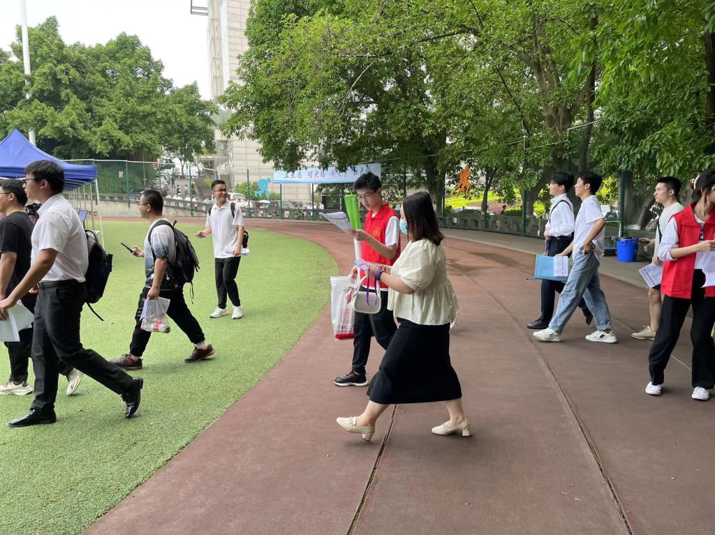 团结广场入口处的志愿者们耐心引导用人单位代表签到登记、参会学生刷卡进场,现场人员进出井然有序;场内志愿者热情协助用人单位进行布展宣传,并依照相关规定对宣传物料进行辅助检查;志愿者服务点则随时供应饮用水与纸、笔等各类文具,并由志愿者向前来咨询的人员提供指引与帮助。烈日炎炎,志愿者们在老师和各小组长的调度下有序轮岗,无论在何种岗位开展工作,都一丝不苟、精神饱满。参与本次双选会的用人单位代表和师生纷纷表示,志愿者们服务贴心、热情周到,展现出了重大学子的良好素质和积极面貌,体现了学生党员乐于奉献的模范带头作用。