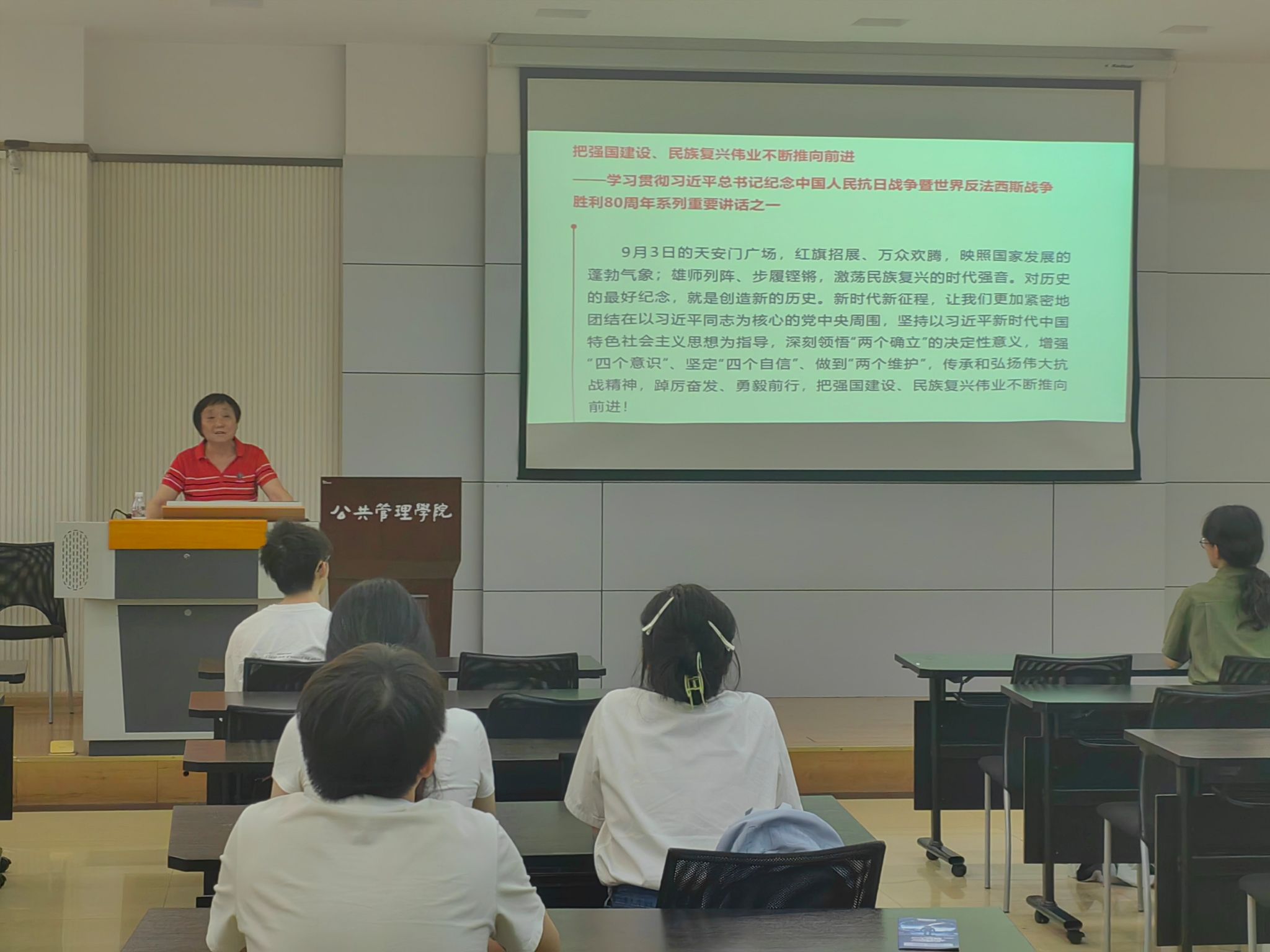 本科生一、四支部在学院楼102会议室开展了“样板支部新征程,凝心聚力助成长”系列活动,本次活动主题为学习习近平在纪念中国人民抗日战争胜利暨世界反法西斯战争胜利80周年大会上的讲话。活动旨在通过深入学习讲话精神,加强学生的爱国主义教育,提升思想觉悟,激发爱国热情。由本科生一支部书记王丽娟主讲,本科生一、四支部的全体党员积极参与本次组织生活。