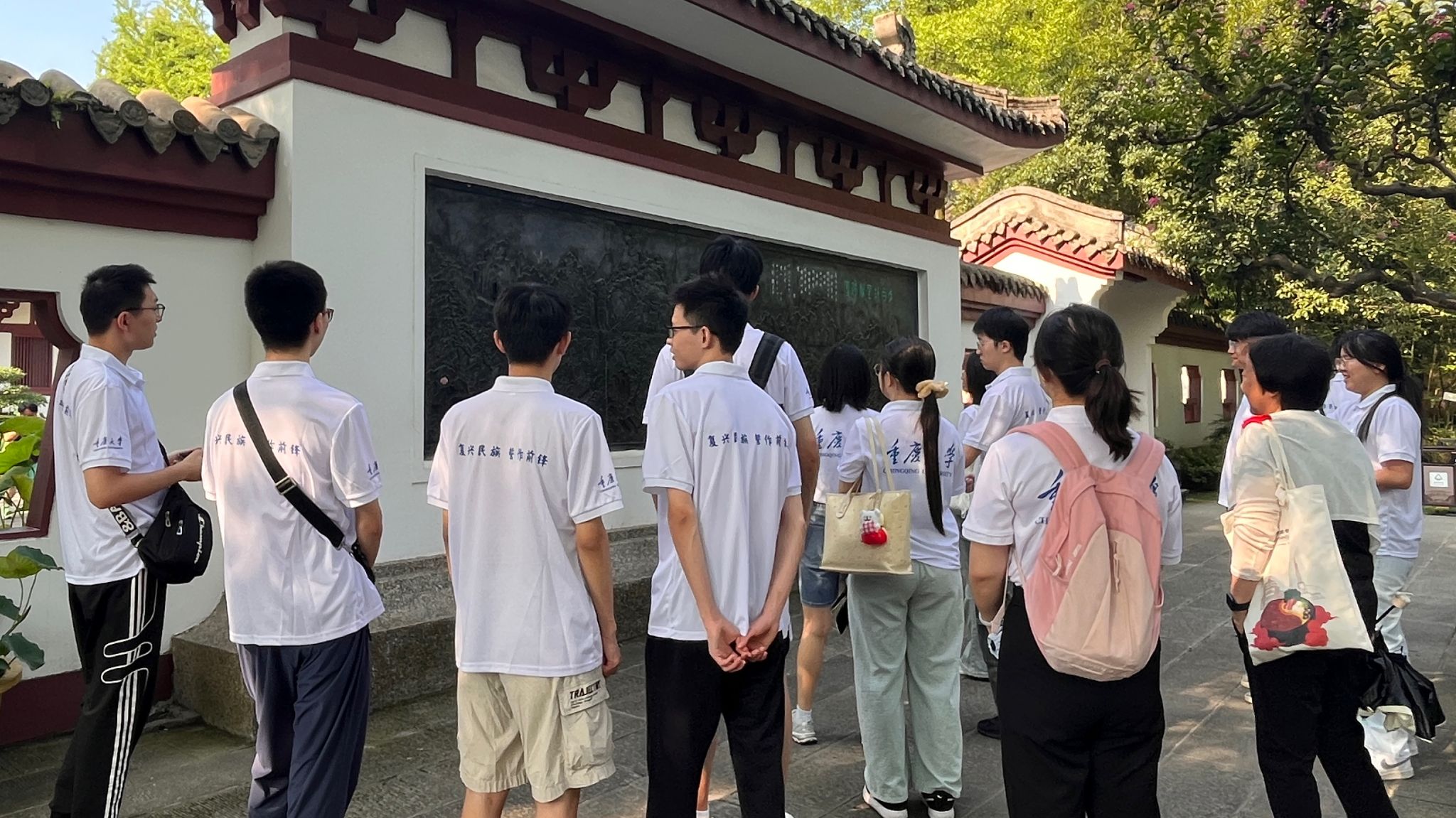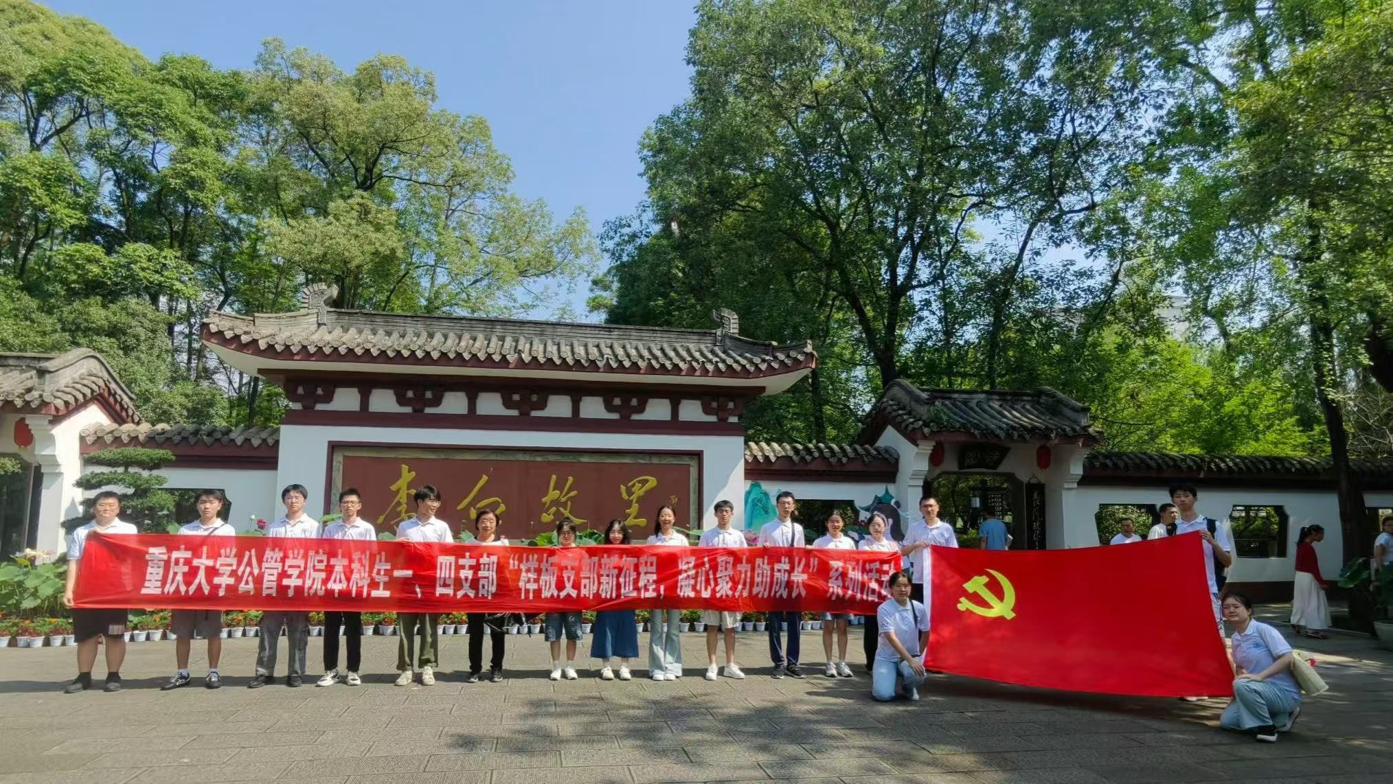 2025年7月15日9时,由本科生一支部书记、学办主任王丽娟同志带领的学院“双城助力实践行”三下乡实践团赴四川江油李白纪念馆,在诗碑林立的仿唐建筑群中,开展了一场融合历史文脉与区域治理的“大思政课”。通过诗歌解码、情景课堂等创新形式,探索李白文化对成渝双城经济圈建设的当代启示。此次三下乡活动实践团成员均为来自本科生一、四支部的入党积极分子和党员。