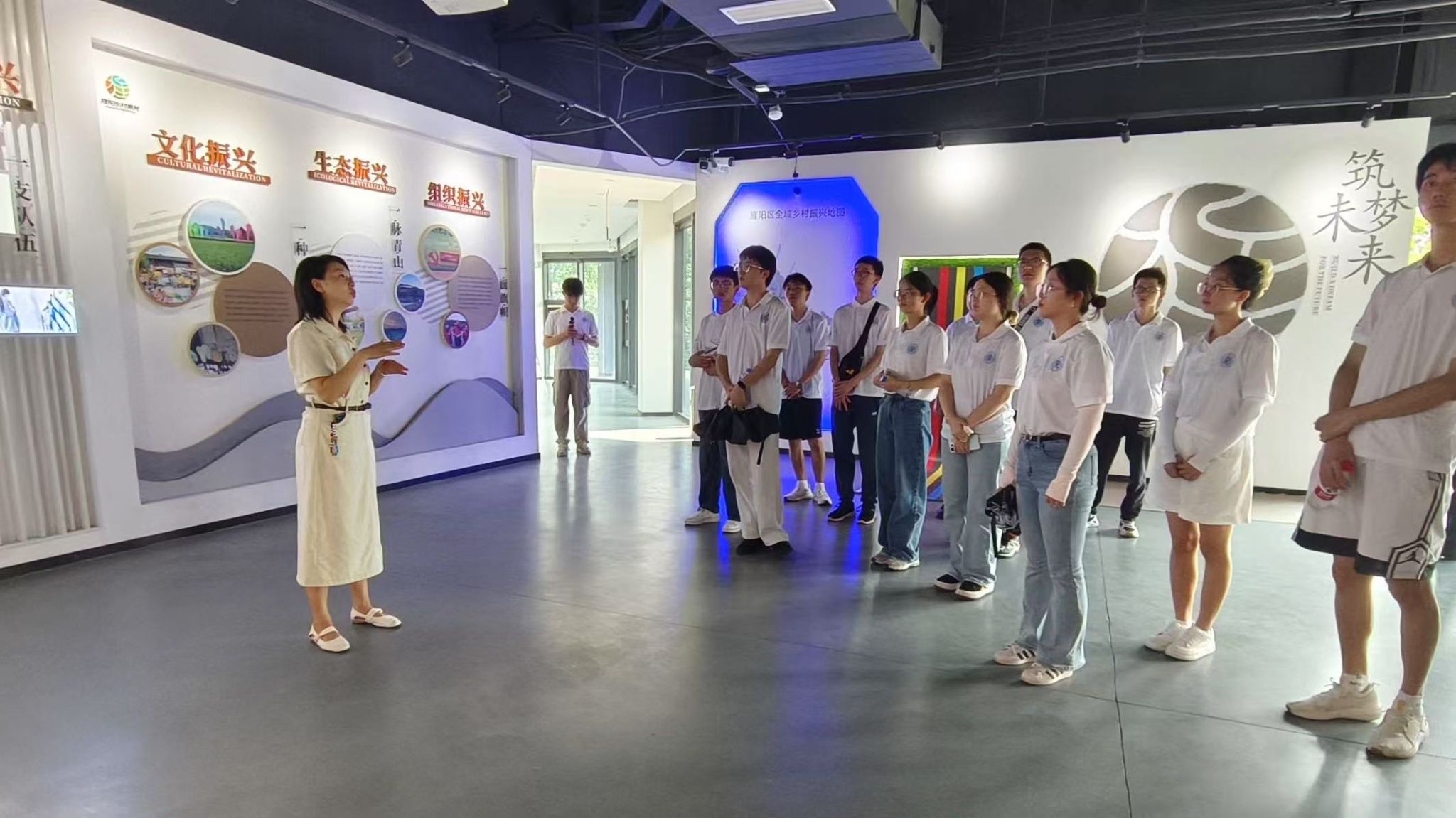 在讲解员的引导下,实践团成员深入村子的各个角落展开调研。这里有咖啡、陶艺、扎染等多种新业态,通过引入多元业态,形成了完整的产业链,不仅增加了村民收入,还提升了村子的知名度。实践团成员围绕产业发展模式,结合公共管理专业特色,积极讨论如何优化产业布局、提升产业竞争力,将理论知识与实际案例深度融合,探索推动乡村产业可持续发展的实践动力。