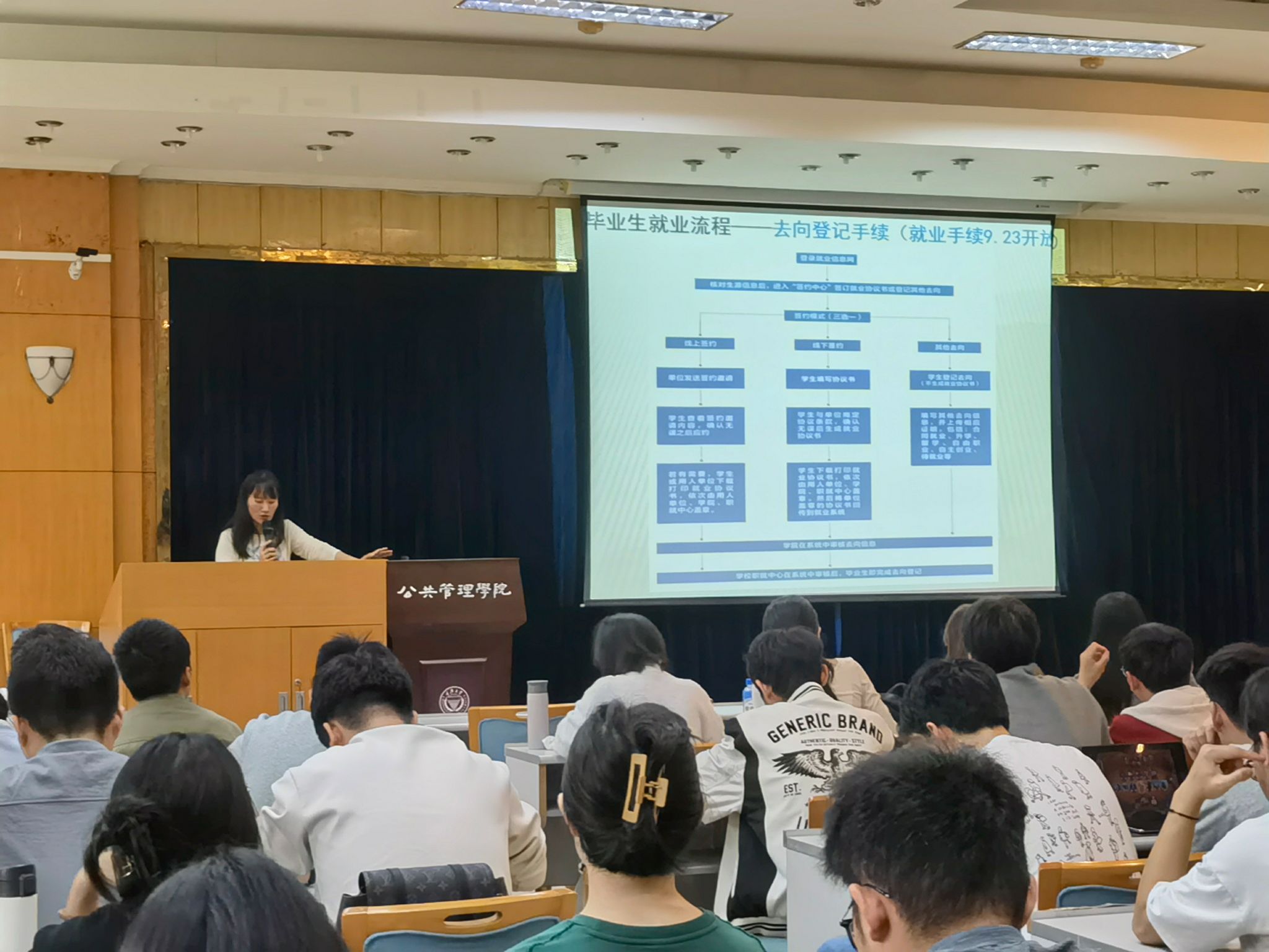 于202会议厅召开了2025届本科毕业生就业动员暨指导大会,会议由本科毕业生辅导员徐柳主持,主要围绕就业动员、就业相关问题指导、毕业生就业服务等三个部分展开,全体2025届本科毕业生到场参会。
