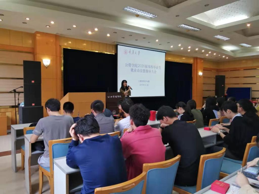 2019108日上午10,公共管理学院召开2020届本科毕业生就业动员暨指导大会,2016全体本科毕业生同学参会,大会2016辅导员徐柳老师主持。