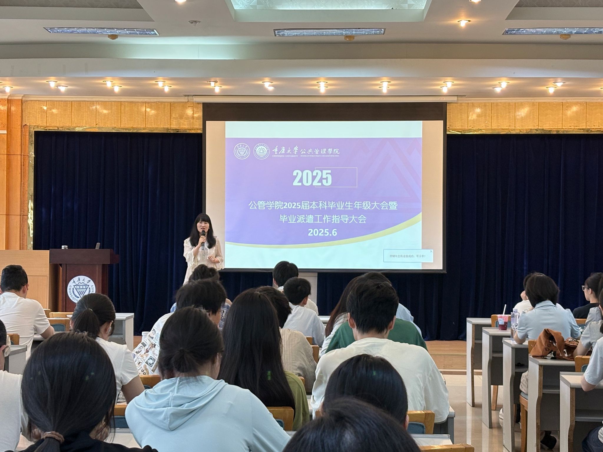 2025届本科毕业生就业冲刺和离校前的各项指导和服务工作,帮助毕业生明晰毕业流程、就业政策及派遣手续,2025年6月6日,学院在202会议室召开2025届本科毕业生年级大会暨毕业派遣工作指导大会。会议由2025届本科毕业生辅导员徐柳主持,全体2025届本科毕业生到场参加。
