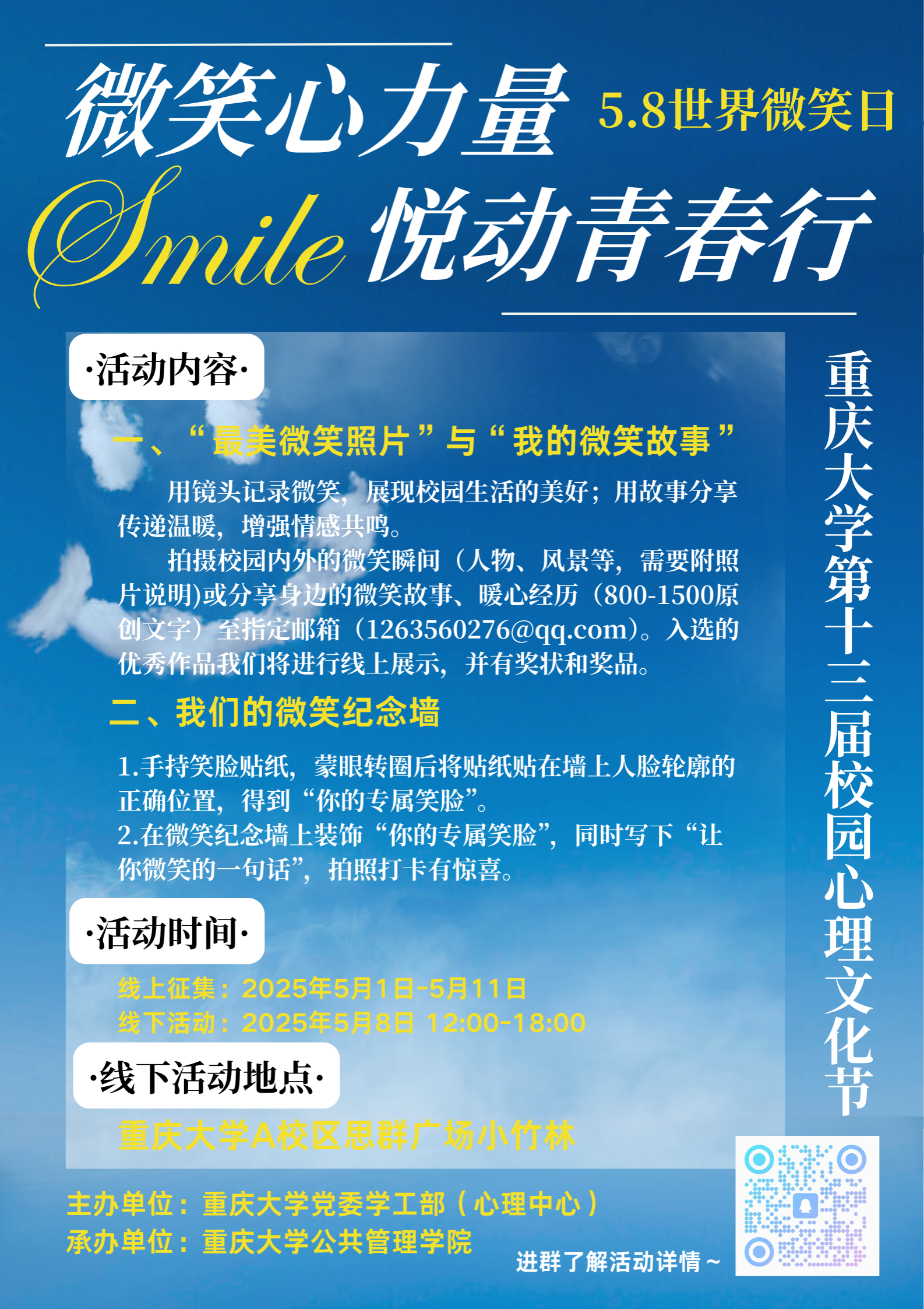 以“世界微笑日”为契机,用创意与温情搭建起心灵互动的桥梁,让“微笑心力量”润泽校园每个角落,助力青年学子以乐观昂扬的姿态奔赴成长新征程。