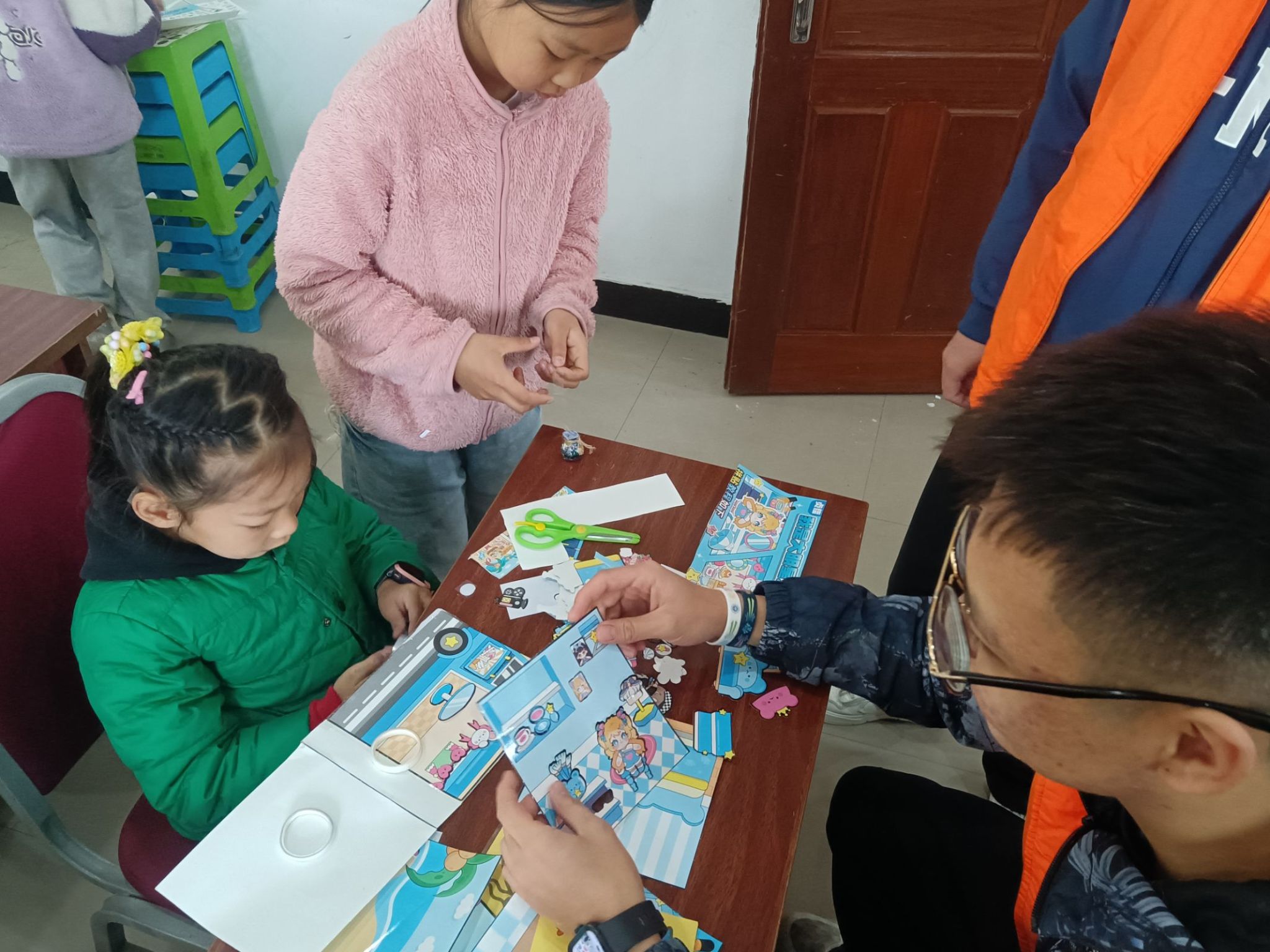 当日,志愿者们按照既定计划,分组陪伴孩子们开展各类活动。小朋友们可以下围棋锻炼思维能力,可以拿起剪刀在卡纸上发挥创造力,可以尝试拼贴培养审美,也可以坐下来和志愿者畅谈。