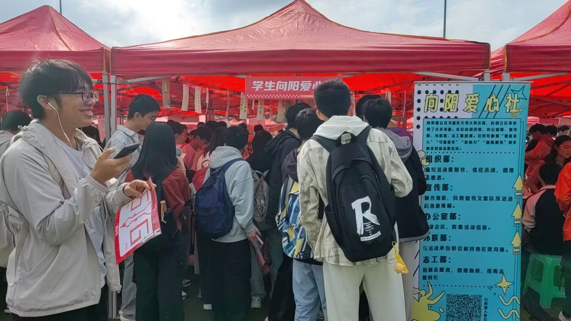 2024年10月27日,校团委学生社团中心举办了盛大的百团纳新活动。向阳爱心社积极参与,招募24级新生加入社团。经过层层选拔,招募了一群有潜力、乐于奉献的学子,为进一步发展社团、壮大社团提供推动力。