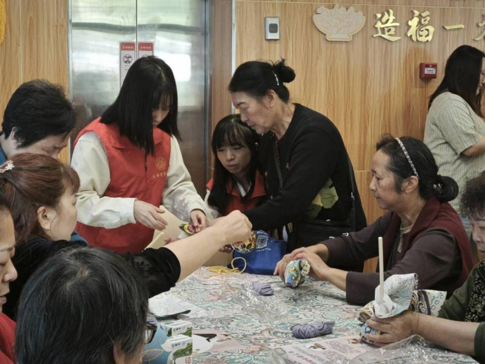 随后,志愿者们为老人分发艾草锤手工材料包,并与老人们一起制作艾草锤,共同感受传统手工的魅力。