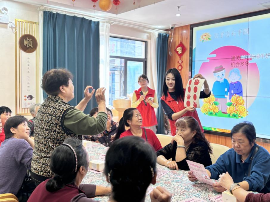 郭明义爱心团队联合开展,共招募8名研究生志愿者,一同前往石井坡街道养老服务中心慰问老人。活动分为两个环节:趣味小游戏与自制艾草锤手工小活动,游戏环节中,老人们积极参与猜灯谜,挑战“左手画方右手画圆”游戏,并在传杯子游戏中相互合作,活动室内一片欢声笑语。