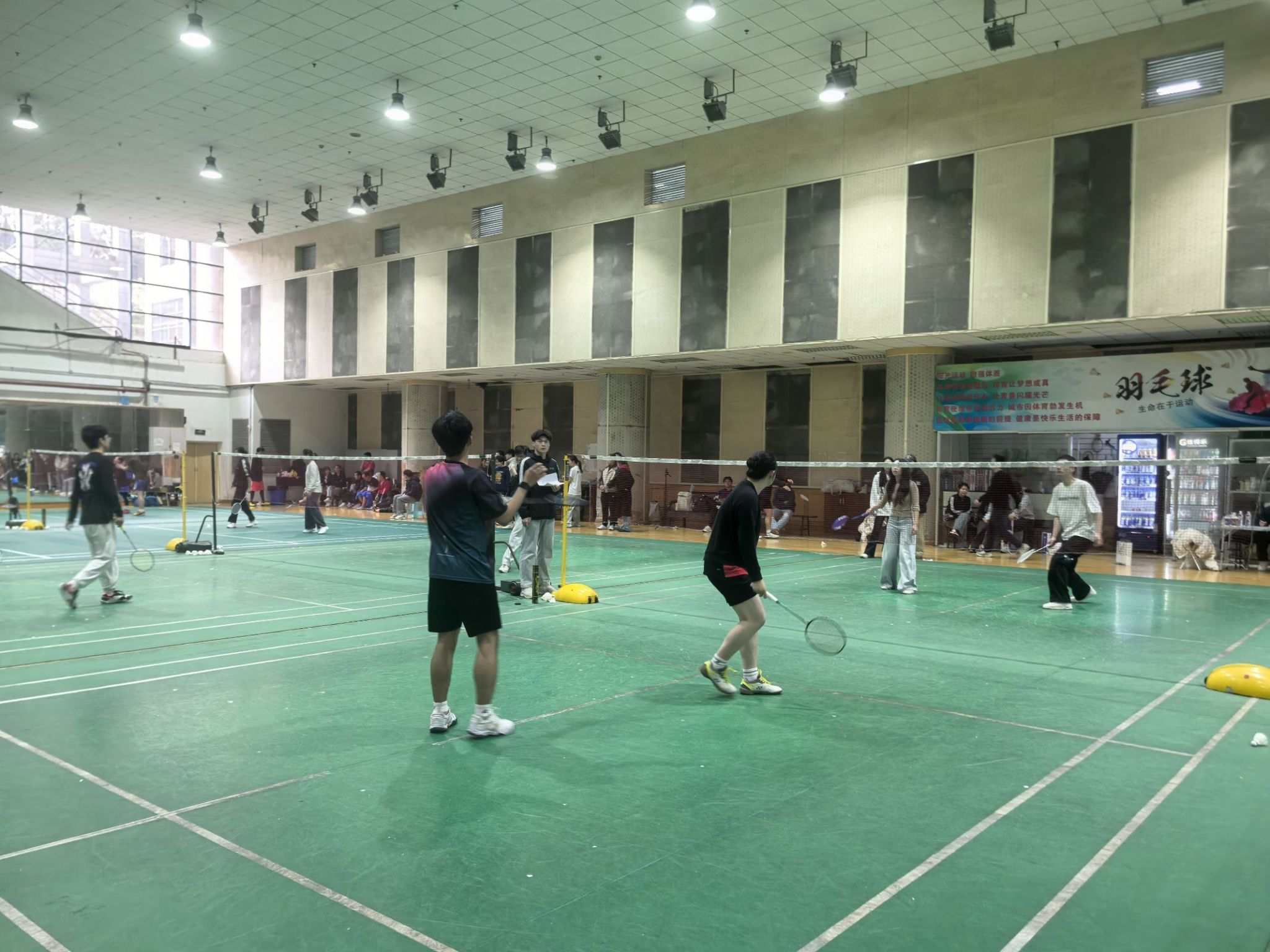 A 区羽毛球馆内气氛热烈、高潮迭起,成人影片