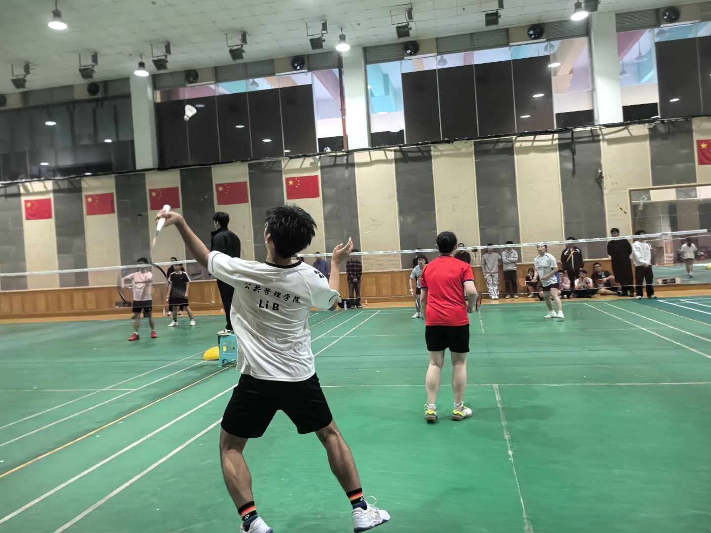 选手们迅速进入状态。混双组合配合默契,在网前与后场之间灵活切换,凭借巧妙的战术和精湛的球技,为学院先下一城。