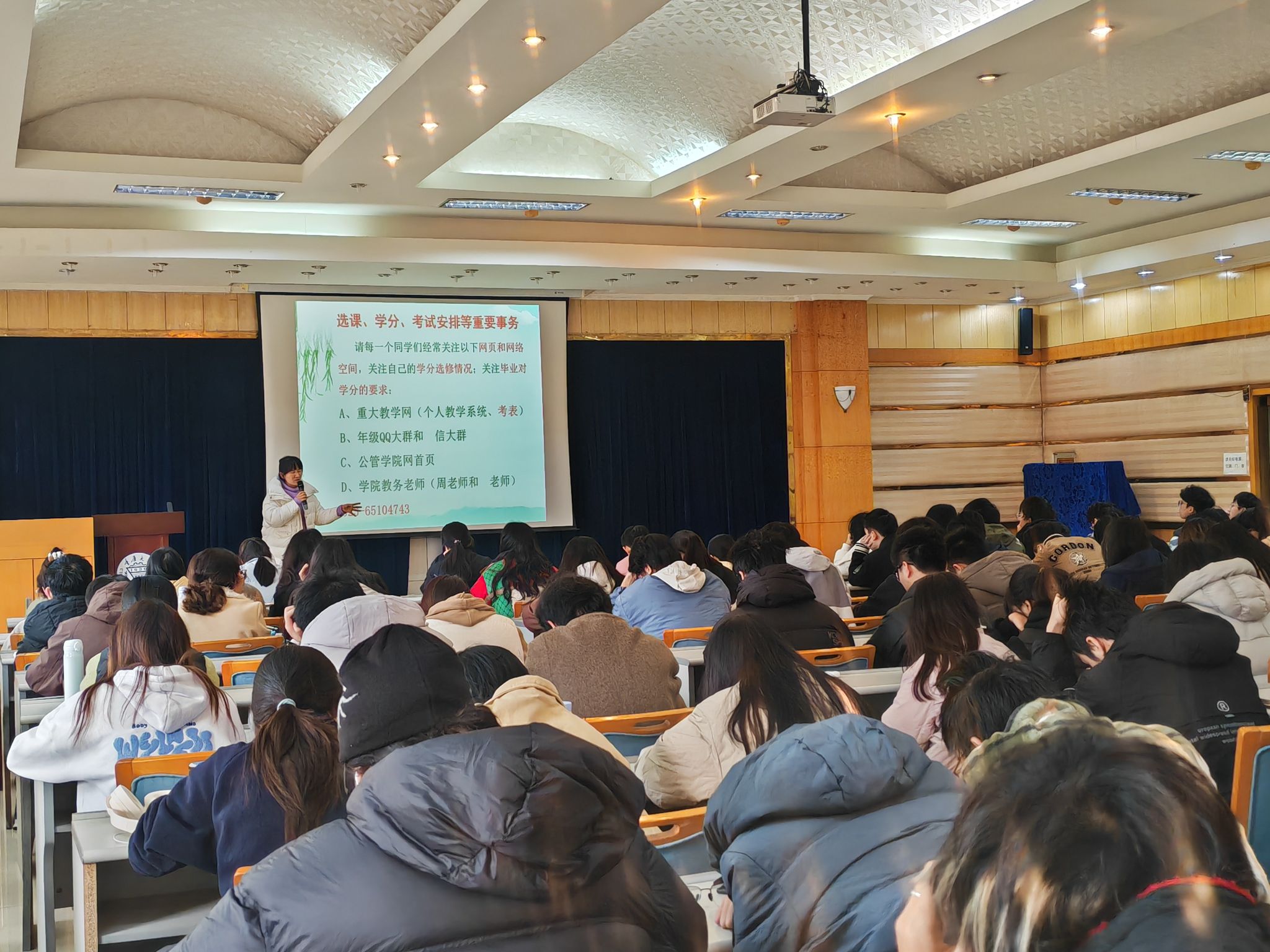 随后徐老师给同学强调了“大二是最好的时机”,鼓励同学们抓住大二学年你拓展综合能力机会,积极关注与自身发展有关的活动,包括科研与学科竞赛、实习实践等,鼓励同学们在寒假期间做好自身规划,并结合自身情况早做准备,为自己的理想而奋进。希望同学们沉住气,早准备,拼优势,勤努力!