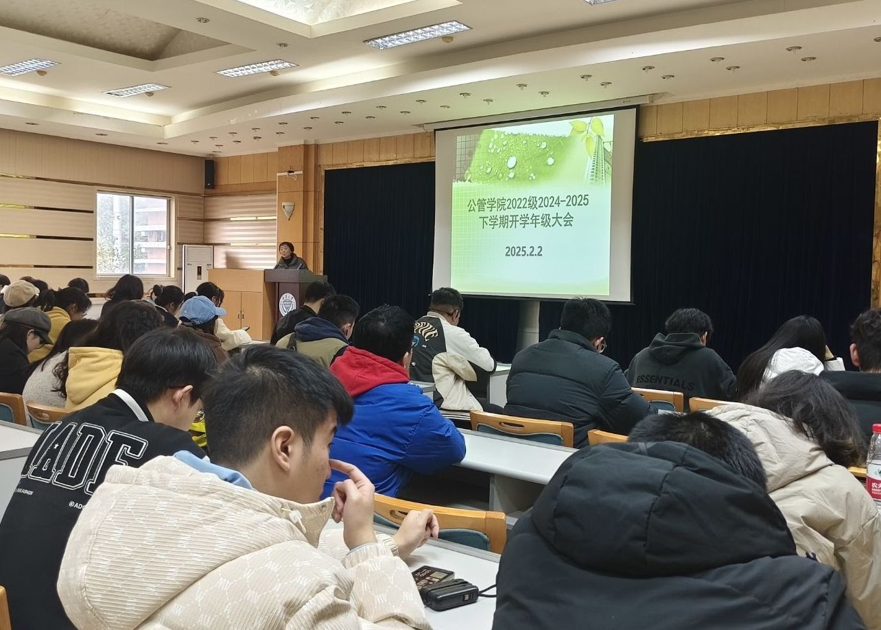 2022级2024-2025学年第二学期开学年级大会在学院楼202多功能会议厅顺利召开。本次大会由学办主任兼22级辅导员王丽娟主持,22级全体同学参与了本次年级大会。