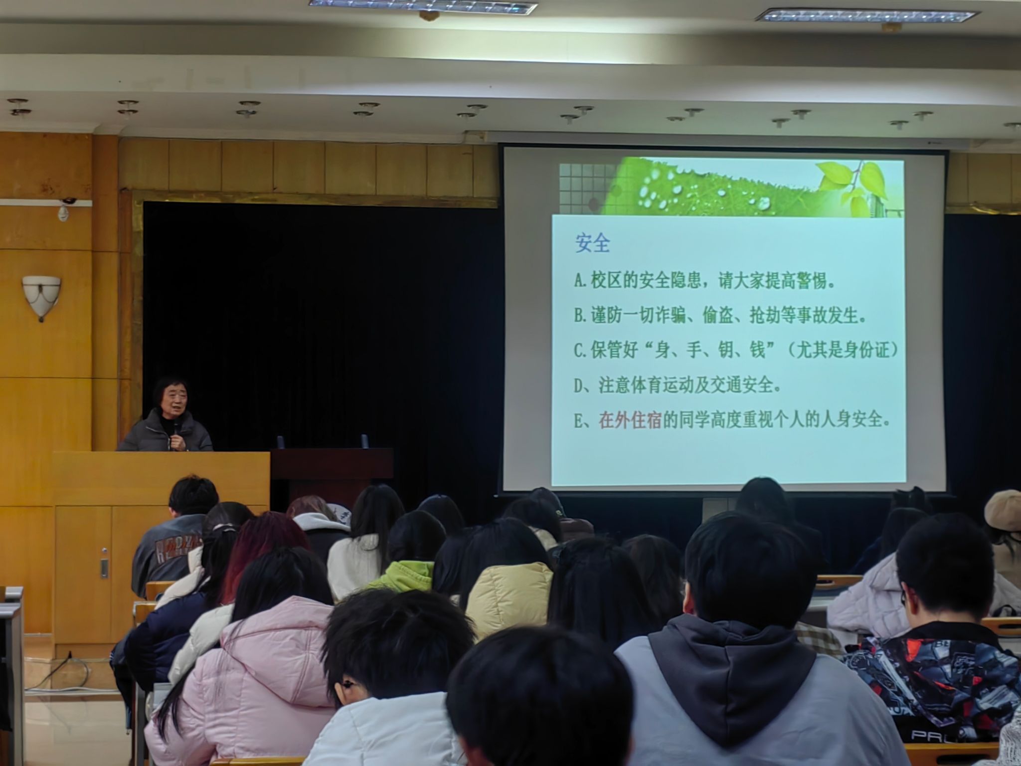 作为一名大三学生,学风纪律已是老生常谈,但王老师还是不厌其烦地叮嘱大家加强自律,珍惜他律,同时配合班委的管理,营造和谐的人际关系与学习氛围。在学习相关的各项事务之外,安全也是非常重要的一点。