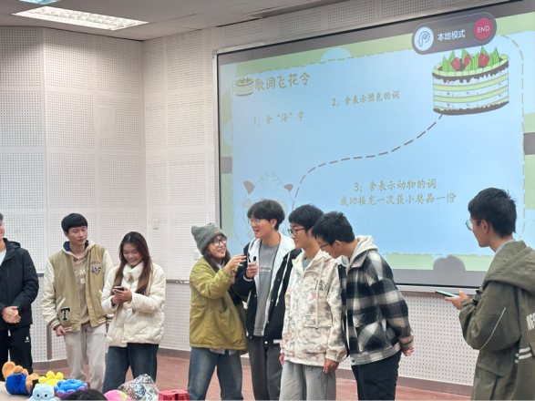 紧接着,大家进行了一场充满活力的“歌词飞花令”比赛。参赛者们需要迅速反应并唱出符合要求的歌词或吟诵出对应的诗句,精彩的表演和熟悉的歌曲让活动现场气氛愉快而轻松,大家也在游戏中增进了彼此的了解。