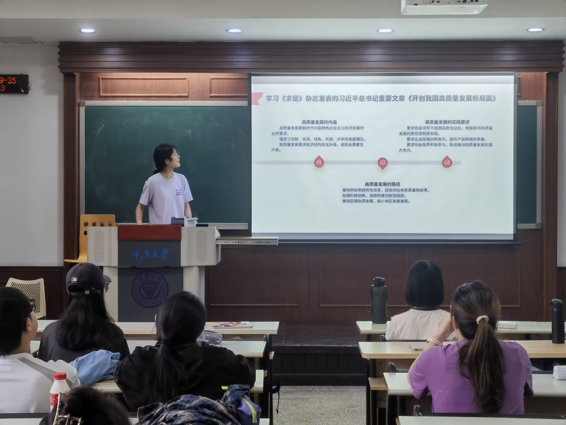 2022级经济学2班团支部在第五教学楼开展“凝聚改革共识,激发奋进力量”主题团日活动。本次活动包含讲解二十届三中全会精神以及宣传绿色发展理念两个板块的内容,以及同学讨论发言共三个部分。