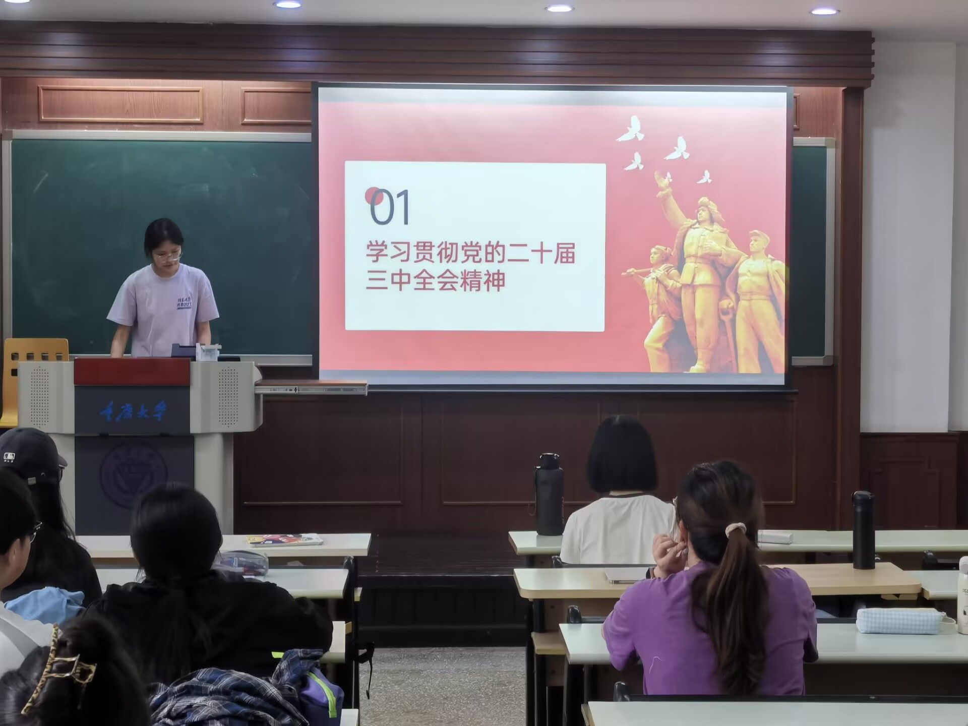 活动伊始,班级团支书姜熠首先向同学们详细讲解了二十届三中全会精神的内涵。通过对《求是》杂志中习近平总书记重要文章《开创我国高质量发展新局面》的讲解,同学们对党的最新理论成果有了更加清晰的认识,更加坚定了跟党走的决心和信心。在讲解过程中,同学们认真倾听,专心学习,积极互动,踊跃发言,现场氛围浓厚。