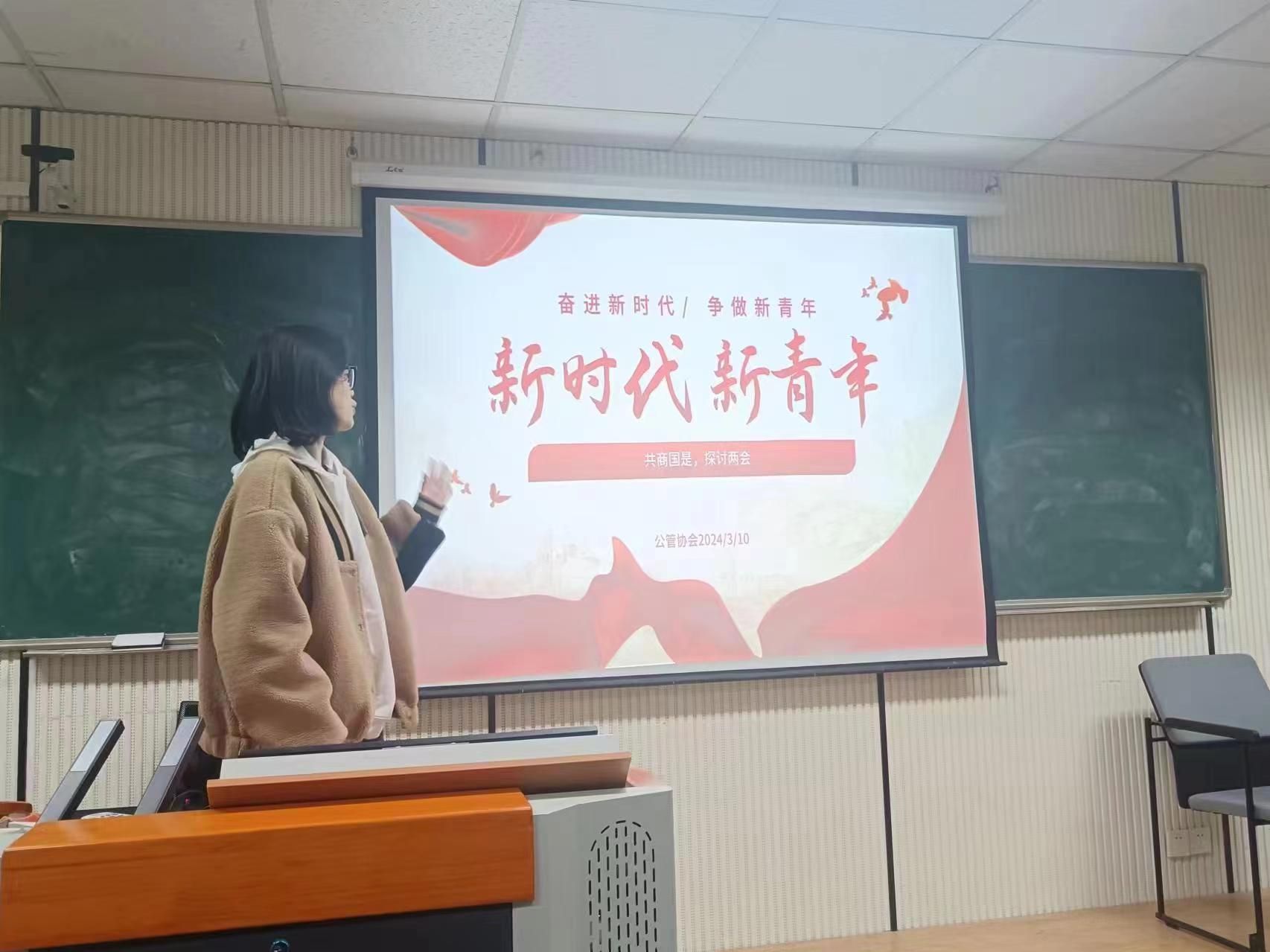 2024年3月10日下午18:00,公共管理协会在公管学院楼104举办了一场全国两会精神学习交流会,本次交流会由公管协会会长主持,公管协会全体成员积极参与。