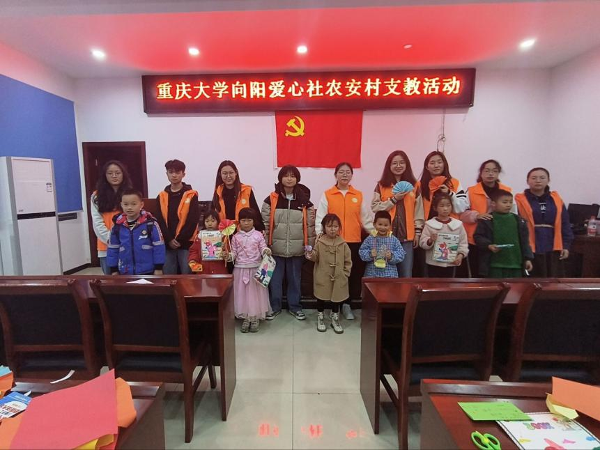 “有哥哥姐姐给我们上趣味课和开展拓展活动,这个周末一点都不孤单。”下午1350社员们在指定地点(虎溪校区北门)集合前往农安村和白林村。志愿者们根据当地孩子的特点,提前准备好相关的课程教学内容,本次课程主要涵盖体育、美术、数学、五子棋和手工环节。志愿者们设计这些课程以丰富孩子们的学习生活,拓展兴趣,在游戏中学到知识并感受到快乐。集体的游戏可以更好的团结大家;手工可以培养孩子们的动手动脑能力,培养他们的创新能力,通过自己的亲手实践,自己动手制作的小成品,特别有成就感。在活动过程中,孩子们表现的活跃、积极,沉浸在丰富多彩的课程学习之中。志愿者们在努力帮助孩子们的同时,逐渐与小朋友们产生了默契,和孩子们的感情也更为紧密。整个活动区充满了欢声笑语。