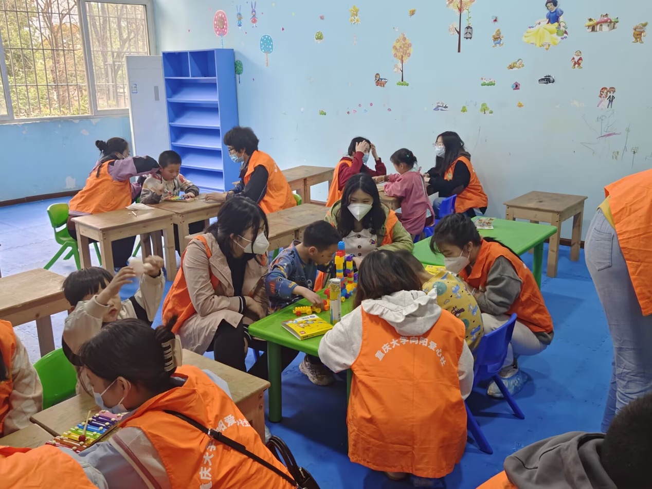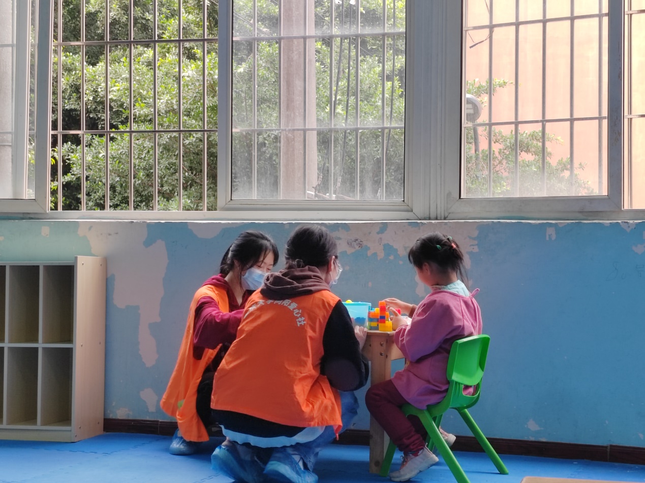 志愿者们也以十分热情、认真的态度参与本次活动。活动过程中,一到两名志愿者对接一位小朋友,与小朋友进行交流、游戏。在长达5个小时的志愿时间里不乏充满着温情的画面,有的志愿者担心小朋友的安全,紧跟着小朋友以防他们受伤;有的志愿者和小朋友一起看着图纸搭建积木,耐心地和他讲解着图纸上的步骤;有的小朋友甚至到了放学时间还拽着志愿者姐姐的衣角,迟迟不愿意离开,成功和志愿者们合影以作留念。