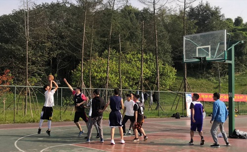 随着一声哨响,篮球被竖直抛向空中。原本凝滞的赛场瞬息万变。球员们蜂拥而上抢夺篮球,在球场上自如地奔跑,跳跃。上半场刚刚开始,各队球员很快便进入状态。经三与公四的冠军争夺赛尤其精彩,两队可谓强强交锋,场上形势变化不断。公四队取胜欲望强烈,开场即对经三快攻猛打,丝毫不给经三队喘息的机会。也许是没有摸透对方战术,经三队在上半场的比赛中总体处于被动的局面,赛场局势基本由公四掌控。上半场结束,公四队领先11分。中场休息时,场上各队球员迅速跑至休息区补充体能,调整战术。