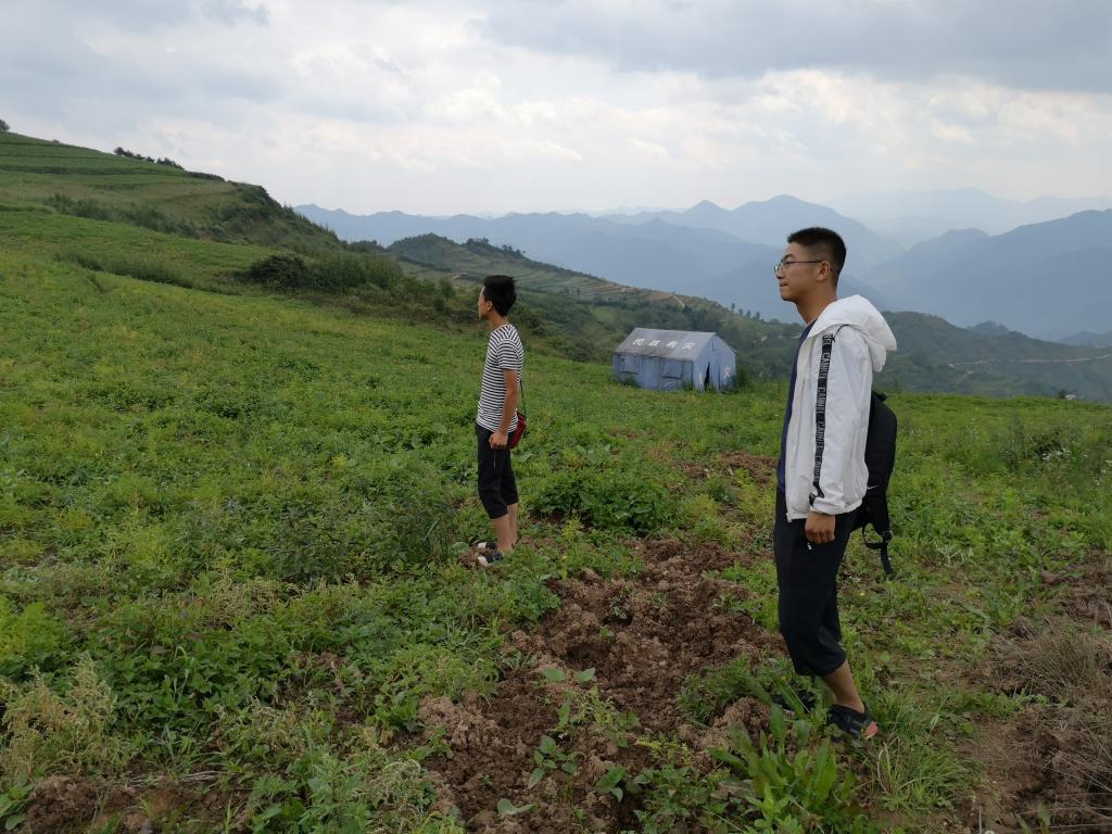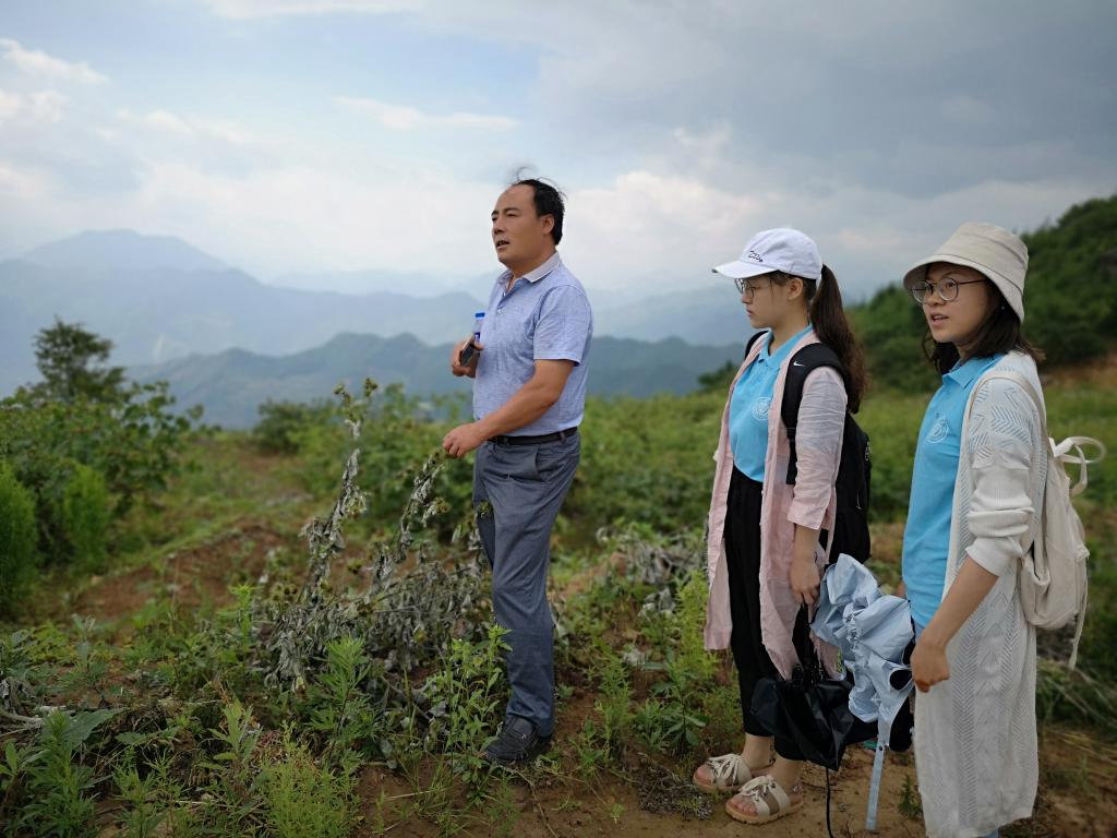 赴甘肃康县乡村振兴助力发展团的队员们跟随陇来喜科技有限公司的创始人关训兵和杨文伟登上乱石山考察调研。