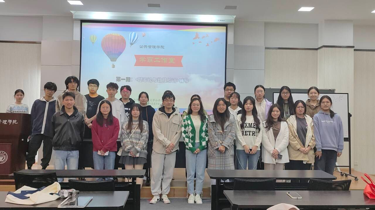 《概率论与数理统计》这门课程是公管学子们公认的“难题”,2023年12月7日16时,学院首期“学霸工作室”就邀请到三位“学霸”——20级人力资源专业的杨滨同学、21级经济学专业的黎秭鋆同学及陈飞同学,为大家带来《概率论与数理统计》的专题辅导和复习分享。本次活动在学院楼102教室,由团委学生会学习部部长吴若宬主持。