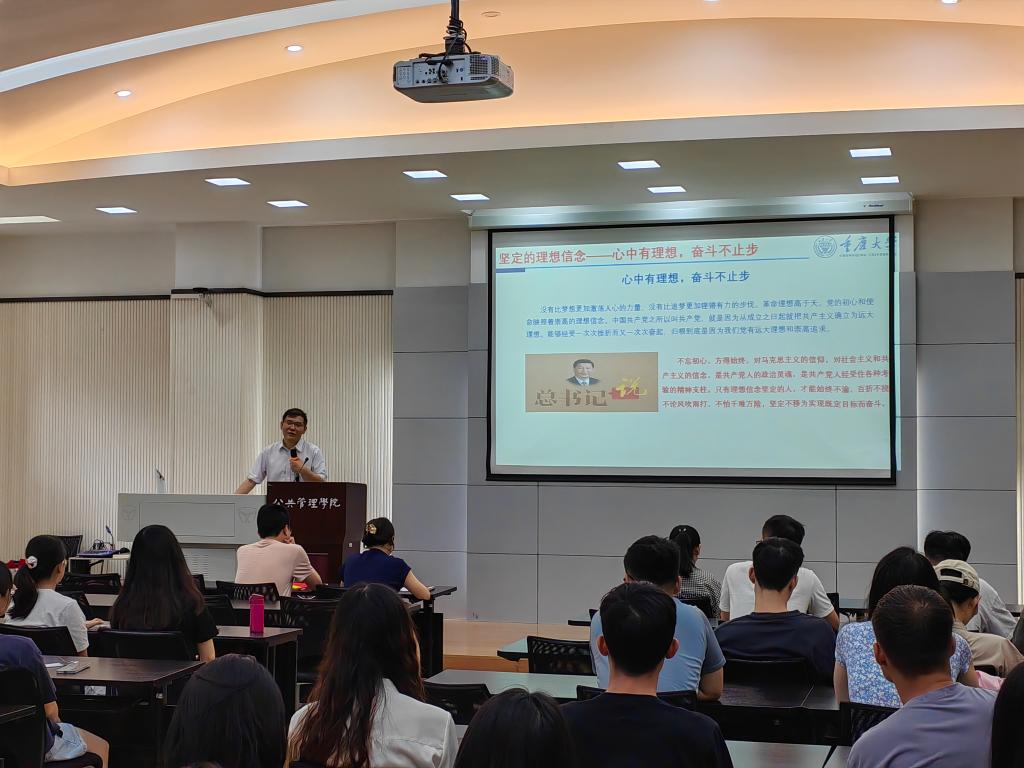 会议伊始,袁晓浩书记以“不忘初心跟党走,立大志、担大任”为主题发表致辞,他殷切嘱咐毕业生党员,要树立坚定的理想信念,学习习近平总书记“我将无我,不负人民”的精神,将自己的发展与党和国家的发展相结合。面对未来的高竞争、强压力、严局势,袁书记告诉我们,要脚踏实地地努力,积极健康地生活,以良好的精神面貌迎接未来的挑战。