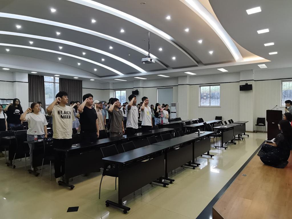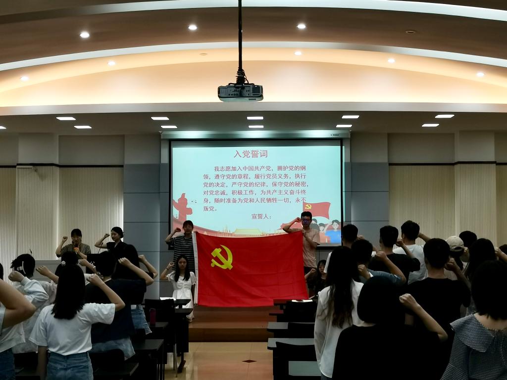 本科生五支部的支部书记同志也在会议上发表了临别赠言,她鼓励同志们,在未来的生活中,面对无处不在的内卷压力,要坚持学习,不忘初心,健康的工作和生活。会议的最后,在徐老师的带领下,全体党员一同起立,再次举起右拳,重温入党誓词,在同志们铿锵有力的宣誓声中,此次党课圆满结束。