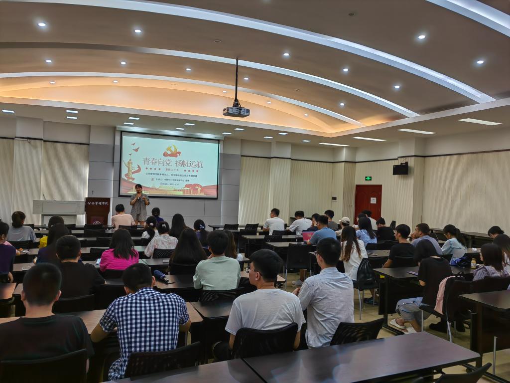 2022届本科毕业生党员、激励青年党员们在毕业后积极进取、不断奋斗,学院本科生二、五支部于2022年6月27日上午9:00在学院102教室共同举办了“青春向党,扬帆远航”本科毕业生党员专题党课暨毕业生党员欢送会。学院党委副书记、本科生二支部联系委员袁晓浩老师出席会议,会议由本科生二支部支部书记、2022届本科毕业生辅导员徐柳老师主持,本科生五支部支部书记严雪颖,本科生二、五支部全体党员到会参加。