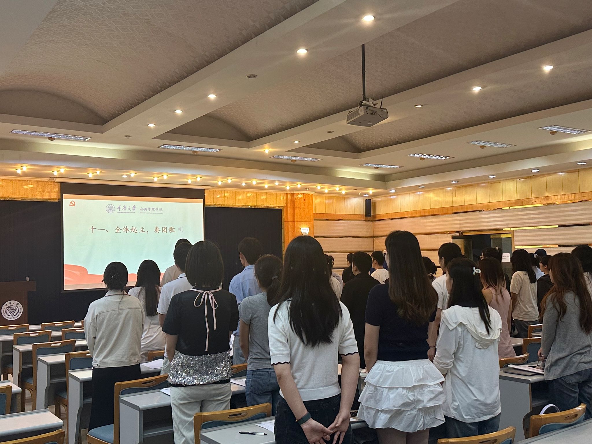 会议最后一项议程,全体起立,奏唱团歌。主持人宣布大会闭幕。