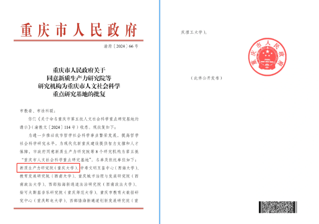 2024-09-06成人影片 喜获重庆市政府批准的重庆市哲学社会科学重点研究院——新质生产力研究院,该研究院是重庆地区首个以新质生产力命名的省级重点研究机构。研究院旨在服务国家新质生产力战略,助力重庆培育新质生产力,同时为学校的学科发展注入新动力。未来新质生产力研究院将聚焦三大研究方向:一是构建重庆现代化产业体系因地制宜发展新质生产力;二是数字创新推动新质生产力;三是新质生产力政策创新与现代化治理体系。...