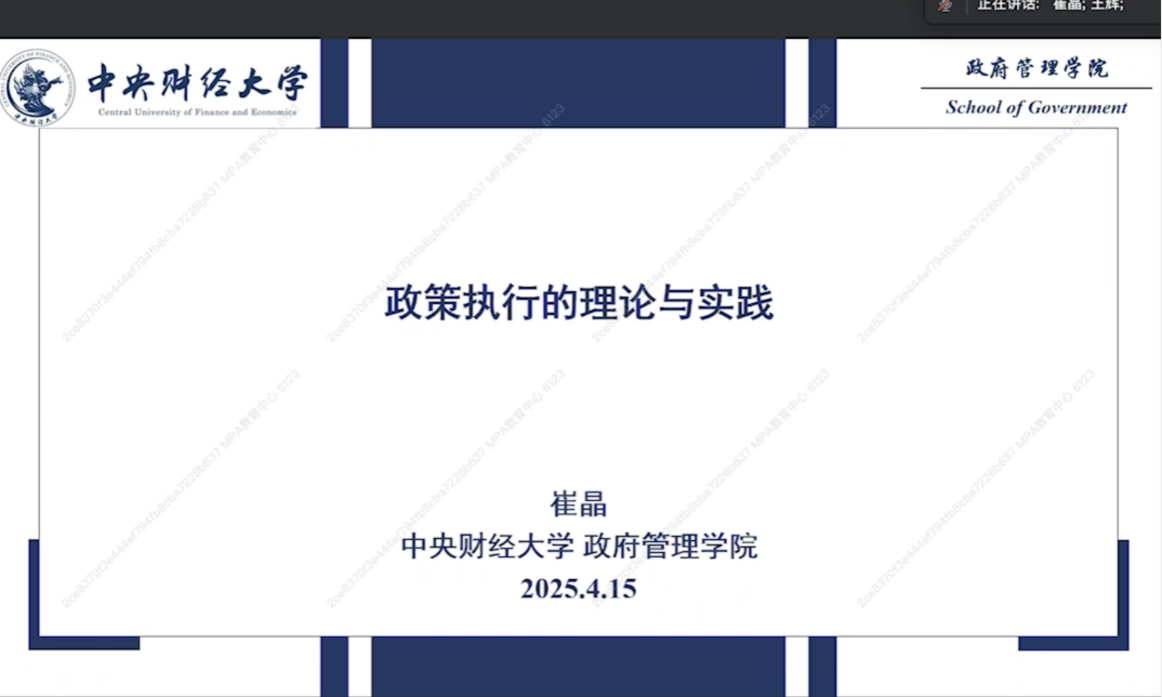 2025年4月15日,中央财经大学政府管理学院教授、博士生导师,中央财经大学“龙马学者”青年学者崔晶应邀在成人影片 “MPA大讲堂”分享“政策执行的理论与实践”主题讲座。成人影片 王辉副院长主持了此次讲座,百余名师生通过云端共同参与这场知识盛宴。在讲座正式开始之前,王辉对崔晶的学术背景和研究领域进行了简要介绍,并对其到来表达了热烈的欢迎。崔晶深入探讨了政策执行在中国的特殊重要性,揭示了政策执行场...